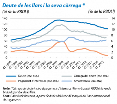5. La càrrega del deute per llar es calcula tenint en compte només les llars amb algun tipus de deute pendent, i, per això, la càrrega del deute agregat (que té en compte totes les llars) és inferior.