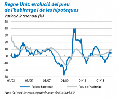 Un altre factor al qual s'atribueix el canvi de to del governador és el desassossec creixent davant una possible bombolla immobiliària. El preu de l'habitatge està tornant a créixer amb vigor i, a l'abril, es va situar en el 9,9% interanual. Aquesta tendència, no generalitzada a totes les regions, és especialment intensa a la capital. Tenint en compte aquest risc, i abans de començar a normalitzar la política monetària, el BoE ha decidit utilitzar eines macroprudencials que limitin el deute hipotecari de les llars i en redueixin, així, la vulnerabilitat. Entre aquests instruments, destaca que els préstecs hipotecaris que superin en 4,5 vegades els ingressos anuals dels clients no podran representar més del 15% del total dels nous préstecs hipotecaris de les entitats britàniques, les quals hauran de realitzar exercicis d'estrès sobre els tipus d'interès als quals concedeixin els préstecs per valorar la capacitat de pagament dels clients. De l'efectivitat d'aquests nous instruments i del que succeeixi al mercat laboral dependran, en gran part, el moment i el ritme de pujada dels tipus d'interès.