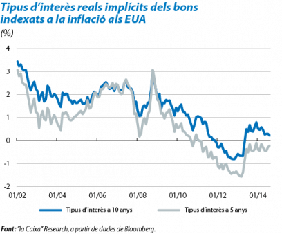 Sembla que les diferents explicacions sobre els factors que han empès els tipus d'interès reals a la baixa, encara que no s'hagin provat formalment i que, per tant, es desconegui quina importància relativa tenen, són satisfactòries. El debat se centra, ara, en les perspectives per als pròxims anys. Si s'ha de jutjar pels mercats, es mantindran molt baixos durant un període molt llarg de temps. Als EUA, per exemple, el tipus d'interès real implícit dels bons a cinc anys indexats a la inflació es troba en el –0,2%, i el mateix bo a deu anys només està 0,4 p. p. per damunt.4