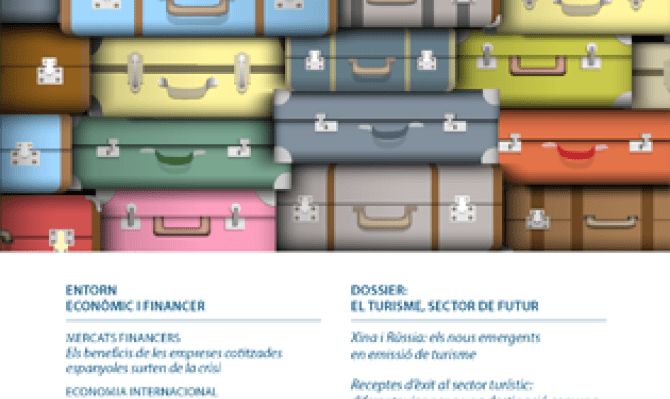 maig 2014| Núm. 379DossierEl turisme, sector de futurContingut disponible en castellà anglès Impressió Descarregar fitxer Editorial Eleccions europees: més importants del que semblen Jordi Gual Les claus del mes Els països avançats agafen el relleu Previsions i indicadors PrevisionsPrincipals indicadors financersPrincipals indicadors econòmicsPrincipals indicadors econòmics de la zona de l'euroPrincipals indicadors econòmics d'Espanya Mercats financers Conjuntura Passes lentes però fermes Focus Els beneficis de les empreses cotitzades espanyoles surten de la crisi Focus Estabilitat financera global: de la liquiditat al creixement Economia internacional Conjuntura El cicle econòmic mundial va millorant i els riscos a la baixa disminueixen Focus Aràbia Saudita: importants desafiaments a l'horitzó Focus L'FMI apunta a una recuperació definitiva de l'economia global Economia europea Conjuntura El creixement guanya tracció, però la pressió sobre el BCE augmenta Focus França: pendent de la política econòmica Focus Propostes per mutualitzar el deute dels països a la zona de l'euro Economia espanyola Conjuntura La recuperació econòmica convenç Focus La lenta correcció del deute extern net a Espanya Focus La demanda d'habitatges a Espanya s'estabilitza Focus La rendibilitat de l'educació a Espanya DossierEl turisme, sector de futur Focus Xina i Rússia: els nous emergents en emissió de turisme Clàudia Canals Focus Receptes d'èxit al sector turístic: diferents vies per a una destinació comuna Àlex Ruiz Joan Daniel Pina Focus Anatomia del turisme a Espanya Focus Impacte econòmic del sector turístic a Espanya Maria Gutiérrez-Domènech