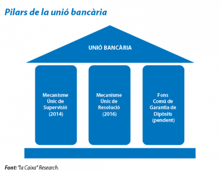 Avanços decidits en l'enfortiment de la unió monetària mitjançant un pilar fonamental: la unió bancària. Al desembre, el Consell Europeu va ratificar l'acord assolit pels ministres d'Economia i Finances de la Unió Europea (ECOFIN) sobre el mecanisme únic de resolució bancària (MUR). En aquest acord, es determina quan entrarà en vigor el MUR, qui prendrà les decisions i quines seran les principals característiques del fons comú que es crearà per ajudar entitats amb problemes de solvència. L'acord assolit finalment ha deixat en mans dels Estats membres la decisió final de liquidar un banc o la necessitat de recórrer al fons comú per sufragar fallides i reestructuracions. Aquest fons comú disposarà d'una dotació de 55.000 milions d'euros, que seran aportats per les entitats financeres entre el 2016 i el 2026. Està previst que les institucions bancàries espanyoles aportin 8.500 milions d'euros. Tot i que encara falta l'aprovació final del Parlament Europeu, que ha mostrat reticències sobre l'acord assolit, no es preveuen canvis significatius.