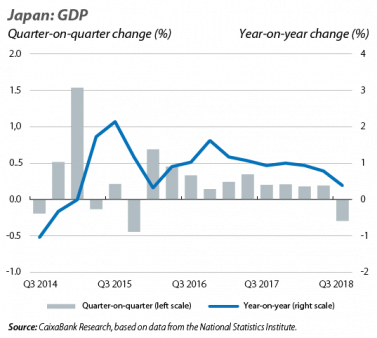 Japan’s growth has taken a respite with a temporary drop in GDP in Q3 (-0.3% quarter-on-quarter). Although a weak growth figure was expected, due to the disruption to economic activity caused by the floods and the heat wave that hit the country during much of July, the impact has been worse than expected. In the last quarter of the year, despite the impact that the trade tensions could have on external demand, we expect the Japanese economy to return to positive growth rates.