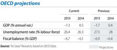 The recession ends and growth prospects improve. GDP in 2013 Q3 increased by 0.1% quarter-on-quarter, the first positive growth rate for the last two years. This change in trend is being accompanied by an upward revision of growth prospects both by the main international bodies and also the consensus of analysts. The OECD, for example, has improved its GDP growth forecasts slightly and has notably lowered the unemployment rate predicted both for this year and especially for 2014. The revision of forecasts by the consensus of analysts occurring over the last few months has also been notable. Specifically, the GDP growth forecast of the OECD for 2014 has increased by 0.3 percentage points over the last three months, up to 0.5%.