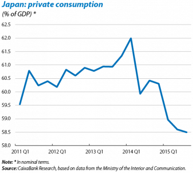 The Bank of Japan makes no move in spite of the moderation in economic activity. CaixaBank Research's forecast for Japan in 2016 has been revised downwards, going from GDP growth of 0.9% to 0.6% due to the poor performance shown by private consumption, weak exports (particularly to China and the US) and a greater appreciation of the yen than expected. In spite of this weak environment, at its April meeting the Bank of Japan surprised the market by refusing to change its rate of quantitative easing, currently at 80 trillion yen per year.
