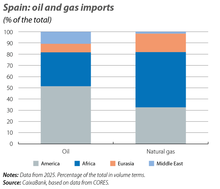Overall, although the war in Iran introduces a new focal point of tension in international energy markets, the limited direct exposure to the Persian Gulf, advances in energy efficiency, and advantages in the electricity market all place the Spanish economy in a favourable position to absorb the shock. However, the country’s high dependence on foreign energy remains a source of vulnerability. This balance indicates that, although Spain remains exposed to a price shock, it has certain structural elements that could mitigate its impact compared to recent episodes.