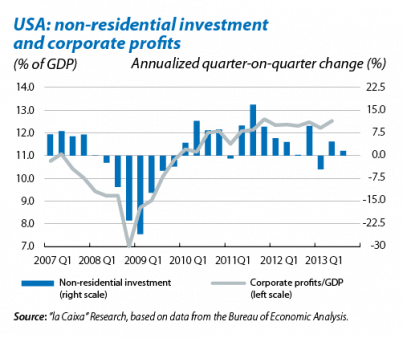 But the biggest risk to our growth forecast for 2014 is non-residential investment. Q3 figures were poor, especially with regard to capital goods (accounting for half of non-residential investment), down by 3.7% annualized quarter-on-quarter and, to a lesser extent, with regard to spending on intellectual copyright (one third of non-residential investment), rising by a modest 2.2%. Our forecast is that investment will pick up steam in 2014. This projection is based on the already observed improvement in business confidence (ISM indices), on corporate earnings that continue to perform solidly and on the fact that, unlike consumption, non-residential investment is still below its 2007 level in real terms. There are therefore reasons to expect investment to pick up, although this has also been the case on previous occasions.