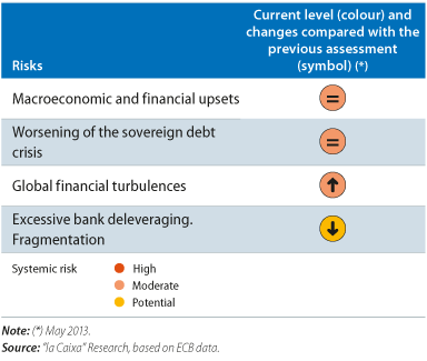 One of the most notable elements of 2013 has been the positive development of the euro area. The European Central Bank (ECB) acknowledged this itself in its recently published Financial Stability Review, which analyses the risk factors that could compromise the region's financial stability. Two important messages can be deduced from the assessment made by the ECB. One is optimistic: taken as a whole, systemic risks are developing positively and are now at levels prior to the outbreak of the financial crisis in 2007. The other is cautious: the scenario is still fragile and vulnerable, given the presence of four large risk factors, disparate in terms of their nature and scope.