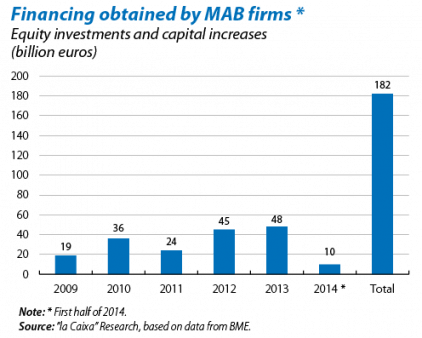 However, over the last few months the MAB's reputation has been damaged by a case of alleged fraud, curiously concerning the most capitalised company within the segment. The fact that SMEs may employ small-scale auditors of questionable reliability and excessively flexible reporting requirements have turned out to be weak points for the supervisory system. In order to make sure such events do not occur in the future, the Ministry of Finance and Competitiveness has announced changes to strengthen the control of companies by extending the supervisory role of BME and establishing new reporting requirements to the CNMV. Moreover, those firms whose stock market capitalisation exceeds 500 million euros will no longer be listed on the MAB and will move to the continuous market. Such reforms to the regulatory framework should be seen as positive: they form part of the learning and development process of a market that has only existed for six years and which, to date, has operated within an overall context of crisis but has huge potential for growth. In this respect, it should also be noted that the MAB still has a long way to go before reaching the level of its European peers such as the British AIM and the French Alternext. In short, the main challenge faced by the Alternative Market in the future is to tighten up its commitment to transparency and supervision.