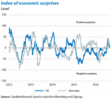 There is a lot of «noise» and uncertainty resulting from Brexit but global macroeconomic fundamentals remain relatively solid. The realisation by investors that the economic slowdown resulting from Brexit will be limited almost entirely to the United Kingdom has provided clear support for the positive tone in markets. In this respect cyclical indicators have come as a positive surprise in the euro area and the US, in spite of the latter’s weak GDP figures for 2016 Q2. Two additional factors have also helped this positive climate. Firstly, the absence of surprises in the activity data from key countries such as China. Secondly, the messages and actions of central banks during the summer which, although they have not essentially altered their respective strategies, have acted as a safety net.