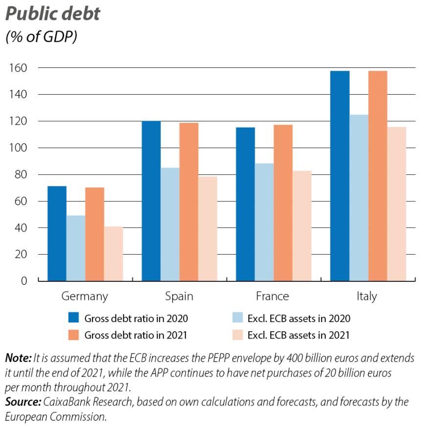 - The COVID-19 crisis is causing a sharp increase in public debt. However, the sustained reduction in interest rates and the lengthening of maturities are offering European economies some cover and are easing the financial burden.