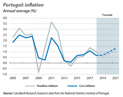 Negative inflation in July and August. For the first time since 2015, headline inflation stood at negative levels in July (–0.3%) and August (–0.1%). This reflected both the fall in restaurant and hotel prices and the reduction in the VAT rate applied to electricity and natural gas. As such, inflation has shown a more moderate profile in 2019 to date. One factor that has contributed to this trend is some of the measures taken by the government, including extending the provision of free textbooks to more school years and reducing the prices of electricity, public transport and telecommunications.