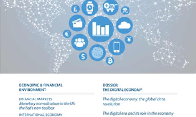 July 2015| No. 392DossierThe digital economyContent available in catalan spanish Print Download File Editorial Greece's alternatives Jordi Gual Key points of the month The Greek storm will not blow Europe's recovery off course Forecasts and indicators ForecastsKey indicators financial marketsKey indicators international economyKey indicators European UnionKey indicators Spanish economy Financial markets Economic outlook Upswing in risk aversion given the uncertain future Focus Liquidity risk in fixed income markets: best to remain on the alert Focus Monetary normalisation in the US: the Fed's new toolbox International economy Economic outlook The Fed and cheap oil will continue to support world growth Focus US GDP in Q1: better than it looks Focus Energy subsidies: ready for a reduction? Economía europea Coyuntura Continúa la recuperación en la eurozona, pero se agrava la crisis griega Focus Emerging Europe: prosperity in the euro area will help to overcome difficulties with Russia Focus Euro area: the importance of real convergence for economic union Spanish economy Economic outlook The economic recovery continues at a good rate Focus Permanent employment contracts in the recovery Focus The interest rate and the improvement in the income balance: a temporary support Focus Alternative sources of financing: venture capital DossierThe digital economy Focus The digital economy: the global data revolution Gerard Masllorens Àlex Ruiz Focus The digital era and its role in the economy Ariadna Vidal Martínez Focus Digitalise or die: the digital transformation of industries and companies Judit Montoriol Garriga Focus The challenges facing the State in the new digital economy Josep Mestres Domènech