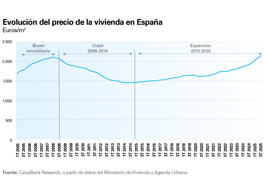 En los últimos 20 años, las dinámicas de nivel y dispersión de los precios del mercado inmobiliario español permiten distinguir tres fases clave: