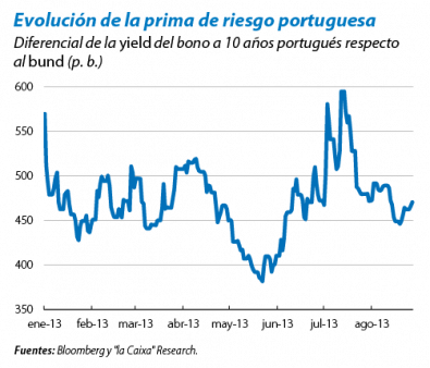 Portugal ha vuelto al punto de mira de los mercados. La sentencia del Tribunal Constitucional anulando importantes medidas de ajuste, y la impopularidad de las nuevas medidas que se han tenido que tomar para mantener el compromiso con el objetivo de déficit han desgastado la coalición de gobierno. La dimisión del ministro de Finanzas, V. Gaspar, aludiendo a la incapacidad de aplicar el programa de ajustes, fue el detonante de una crisis de gobierno que se ha cerrado, pero que ha dañado uno de los principales elementos sobre los que se apoyaba la confianza de los inversores: el compromiso de la clase política portuguesa con el programa de reformas.
