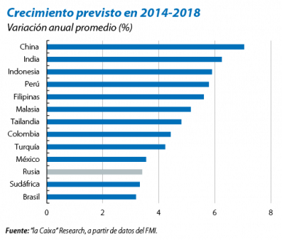 Entre las economías emergentes, Rusia está sorprendiendo negativamente por sus resultados recientes en materia de crecimiento. De cumplirse con las previsiones del FMI, Rusia habría crecido un pobre 1,5% en 2013. Entre los grandes emergentes, solo México registraría un crecimiento menor en dicho ejercicio. Este comportamiento suscita interrogantes sobre las posibilidades económicas del país, tanto a corto como a medio plazo.