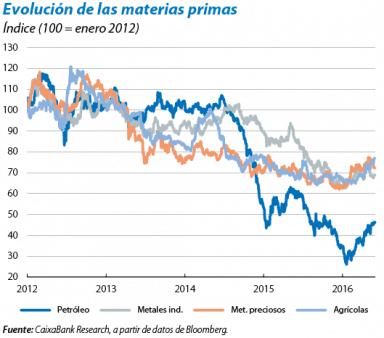 La recuperación generalizada del precio de las materias primas se frena. El petróleo siguió recuperándose, pero a un menor ritmo que en los últimos meses, después de subir más de un 20% en abril. Sin embargo, este crecimiento más flojo, que alcanzó tan solo un 3,2% en el cómputo mensual, no impidió que el barril de Brent alcanzara la barrera de los 50 dólares en las últimas sesiones del mes. En cuanto a las otras materias primas, mientras que los precios de los bienes agrícolas subieron, cabe destacar el mal desempeño de los metales preciosos e industriales. En particular, el precio del cobre, indicador adelantado de la actividad industrial, retrocedió más de un 8% pese a un ligero repunte a final de mes.