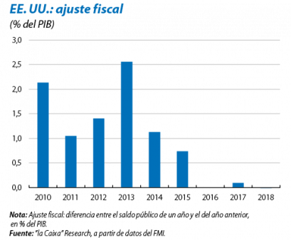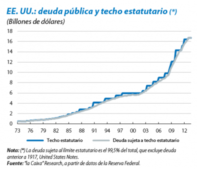 El crecimiento económico norteamericano recibirá el apoyo de una fiscalidad más benigna y más calmada en términos de incertidumbre en 2014. En particular, el FMI prevé un ajuste fiscal del 1,1% del PIB este año, frente al 2,6% de 2013. Por su parte, los riesgos de un bloqueo político que impida aumentar el techo de la deuda estadounidense (máximo legal de deuda que puede contraer el Estado) se han reducido ante la mejor situación presupuestaria y el reciente acuerdo alcanzado entre demócratas y republicanos sobre el sequester.