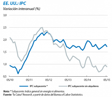 El PIB tuvo un retroceso mínimo en el 1T 2015, según la segunda revisión que efectúa mensualmente el Bureau of Economic Analysis. El avance publicado (del 0,1% intertrimestral) registró un descenso nimio a causa de un sector exterior que lastró el crecimiento más de lo que se había estimado en la primera entrega, en parte por la huelga portuaria del 1T. El crecimiento interanual quedó en el 2,9%, aunque lo más destacable de esta tercera entrega fue la ligera revisión al alza del consumo privado. Ratificaron esta fuerza del consumo los datos de las cuentas nacionales de mayo, que registraron una subida intermensual del 0,6% del gasto en consumo personal, y una mejora de la renta de los hogares más sólida que la de abril. Las ventas minoristas de mayo también se mostraron fuertes, y la percepción del momento actual que mide el índice de confianza del consumidor del Conference Board es asimismo positiva y se sitúa cerca de los niveles de 2006.