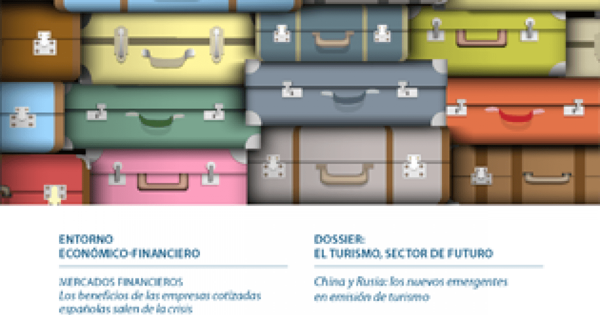 mayo 2014| Núm. 379DossierEl turismo, sector de futuroContenido disponible en catalán inglés Imprimir Descargar fichero Editorial Elecciones europeas: más importantes de lo que parecen Jordi Gual Las claves del mes Los países avanzados toman el relevo Previsiones e indicadores PrevisionesPrincipales indicadores financierosPrincipales indicadores económicosPrincipales indicadores económicos de la zona euroPrincipales indicadores económicos de España Mercados financieros Coyuntura Pasos lentos pero firmes Focus Estabilidad financiera global: de la liquidez al crecimiento Focus Los beneficios de las empresas cotizadas españolas salen de la crisis Economía internacional Coyuntura El ciclo económico mundial va mejorando y los riesgos a la baja disminuyen Focus El FMI apunta a una recuperación definitiva de la economía global Focus Arabia Saudí: importantes desafíos en el horizonte Economía europea Coyuntura El crecimiento gana tracción pero la presión sobre el BCE aumenta Focus Propuestas para mutualizar la deuda de los países en la eurozona Focus Francia: pendiente de la política económica Economía española Coyuntura La recuperación económica convence Focus La demanda de viviendas en España se estabiliza Focus La lenta corrección de la deuda externa neta en España Focus La rentabilidad de la educación en España DossierEl turismo, sector de futuro Focus Recetas de éxito en el sector turístico: vías diferentes para un destino común Àlex Ruiz Joan Daniel Pina Focus China y Rusia: los nuevos emergentes en emisión de turismo Clàudia Canals Focus Anatomía del turismo en España Focus Impacto económico del sector turístico en España Maria Gutiérrez-Domènech